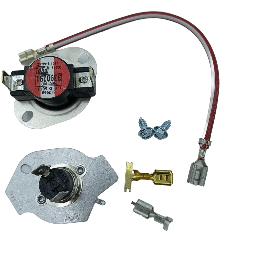 Ce kit comprend un thermostat à limite élevée évalué à 80 degrés Fahrenheit et une coupure thermique évaluée à 309 degrés Fahrenheit. Il est également livré avec un fil de liaison de 5,9" de long entre les bornes pour une installation facile. Gardez votre sécheuse en bon état et en toute sécurité grâce à ce kit durable.